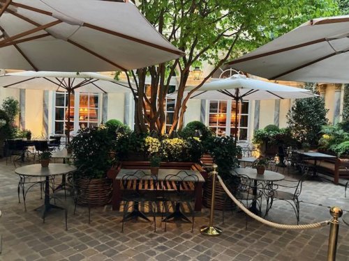 So let me distract you with a couple of pictures of the Ralph Lauren atelier in Paris, which also has a bar and restaurant in the courtyard!