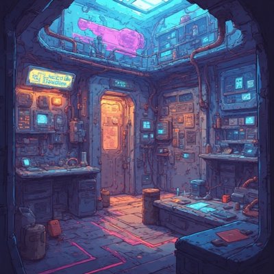 Behind him, he heard the rumbling of gears again, saw the door open, and a squat man of very little stature enter the room. He took in the room: its psychedelic colored walls, the game disks on the floor and the smell of fried circuits in the air and asked, “You didn't just do what I think you did, did ya?”